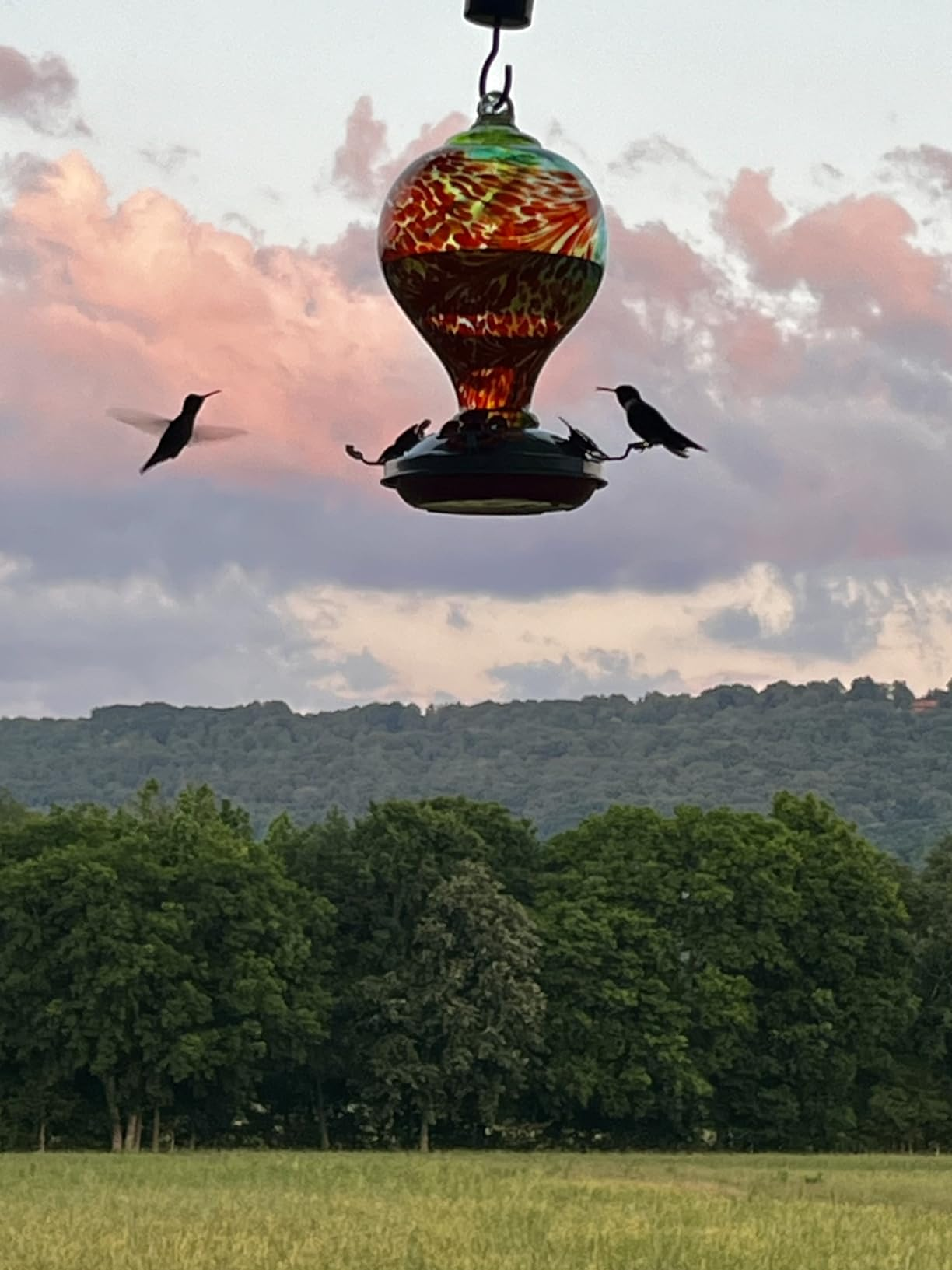 True story: no sooner had I shut my front door after hanging this feeder on my porch, did I look back out the window to find two of our neighborhood hummingbirds fighting over this feeder! It was awesome! And it just keeps going on... they are pretty fierce little dudes but maybe they'll learn to take turns, LOL. It's also honestly just a beautiful and really well-made product. I'm annoyed I didn't get one sooner. Thank you!