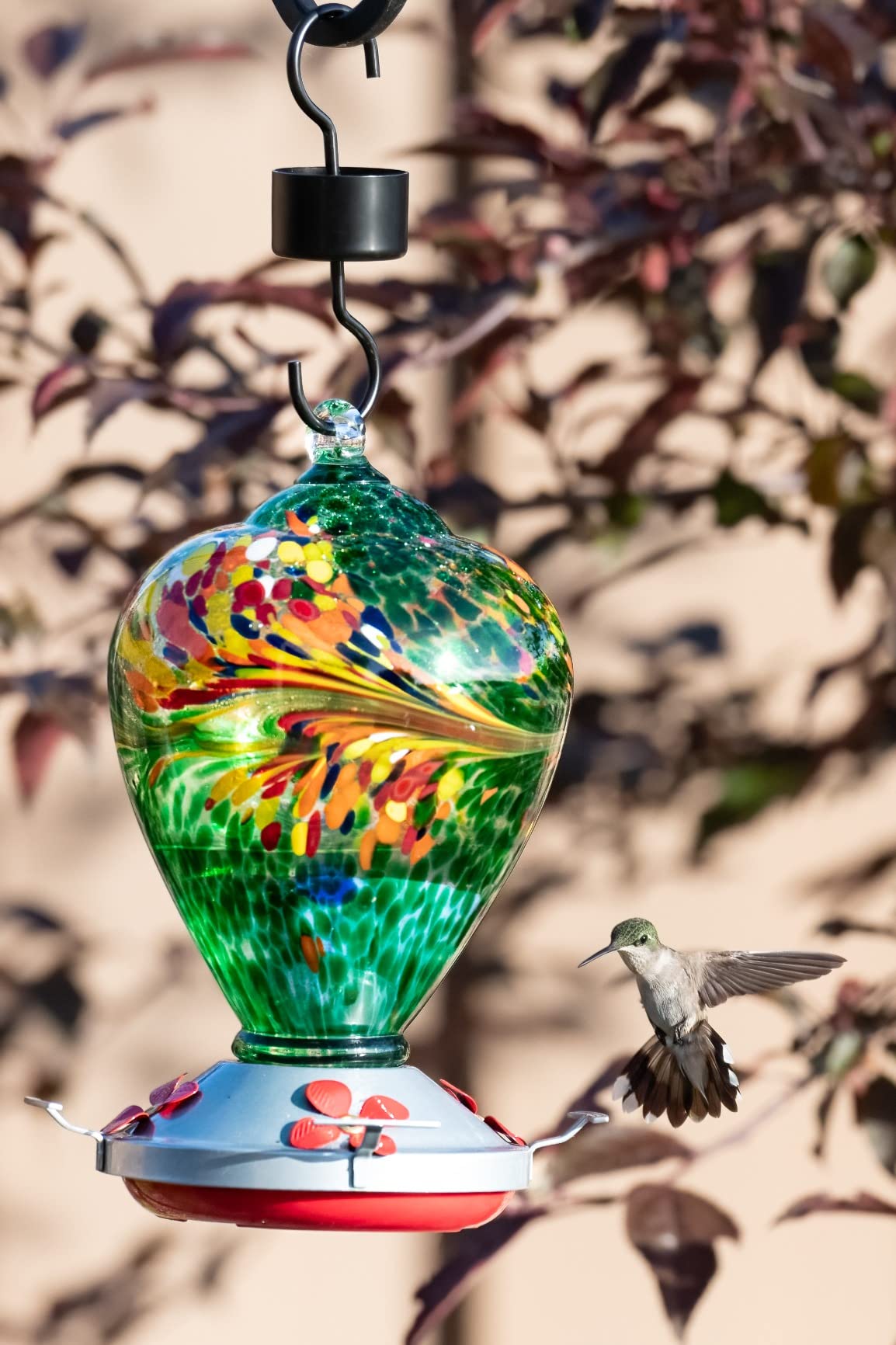 Muse Garden Hand Blown Glass Hummingbird Feeder - 27 Ounces - Fireworks