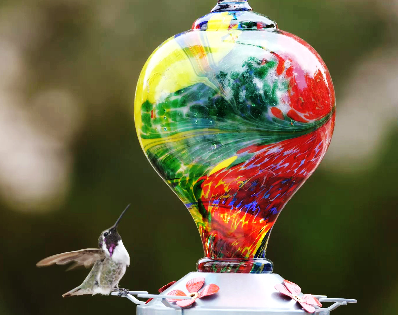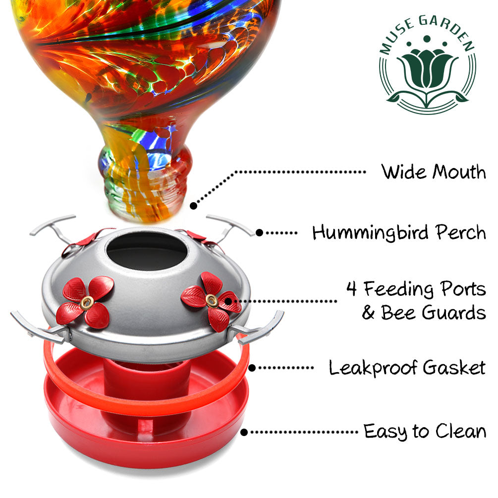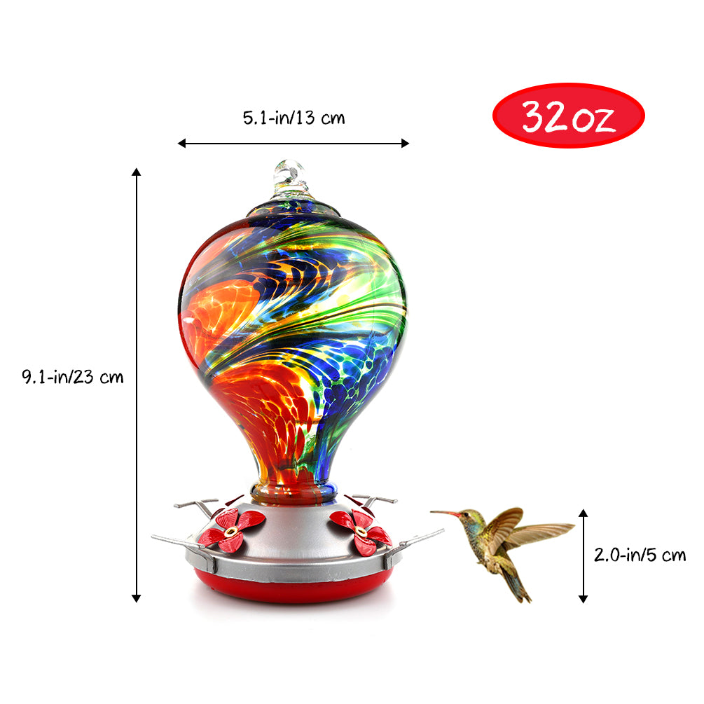 Muse Garden Hand Blown Glass Hummingbird Feeder - 32 Ounces - Nebula