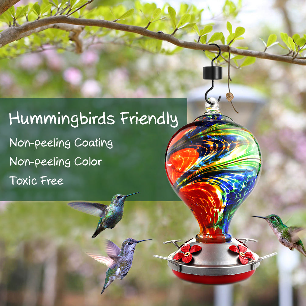 - The durable glass is resistant to damage and fading. Compared with plastic bird feeders, it performs better in all weathers.